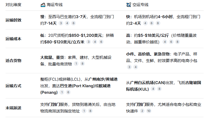 When shipping from Guangzhou to Malaysia, there are two well-established options: sea freight and air freight. You can make your decision based on your shipment’s time-sensitive requirements, volume, weight, and budget.