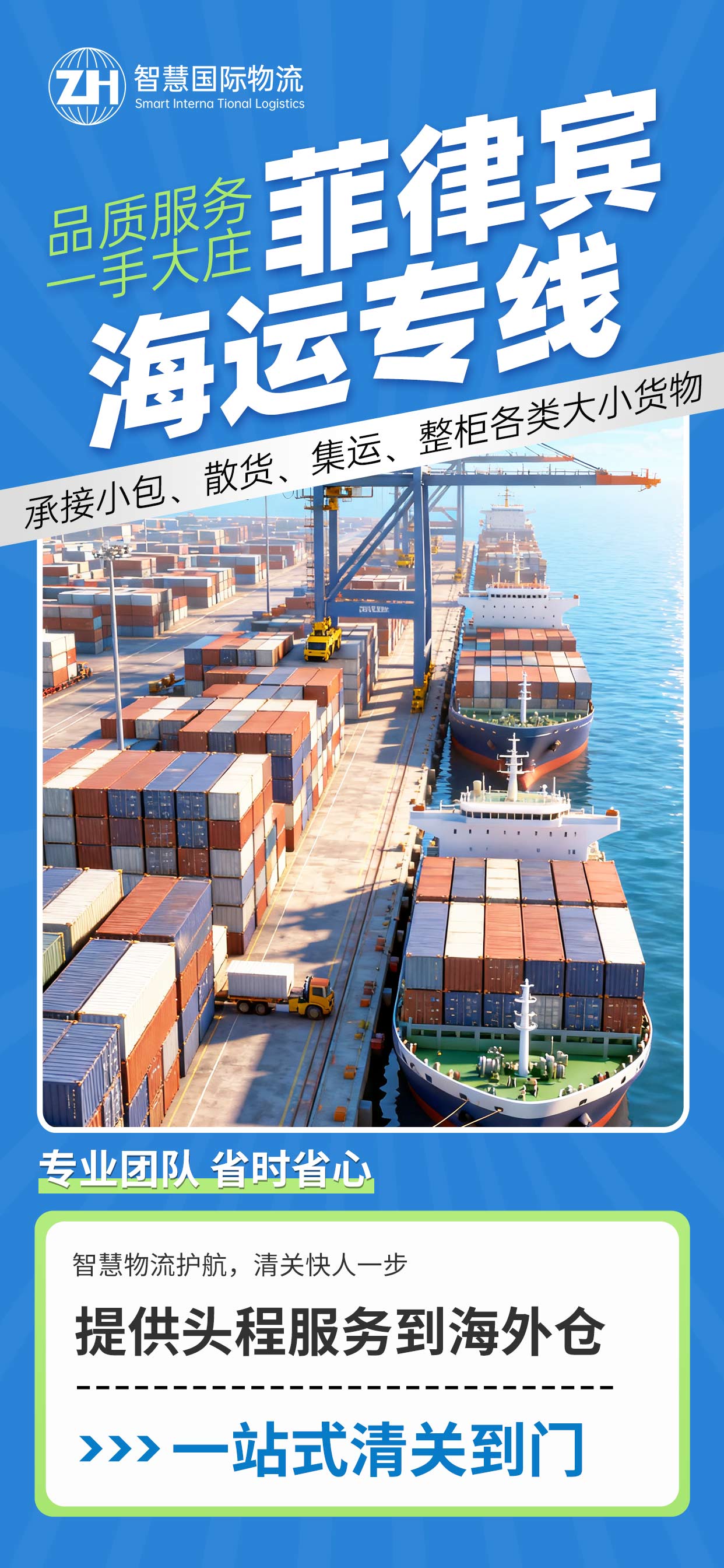 菲律宾段:港口操作、陆地运输、最终配送。