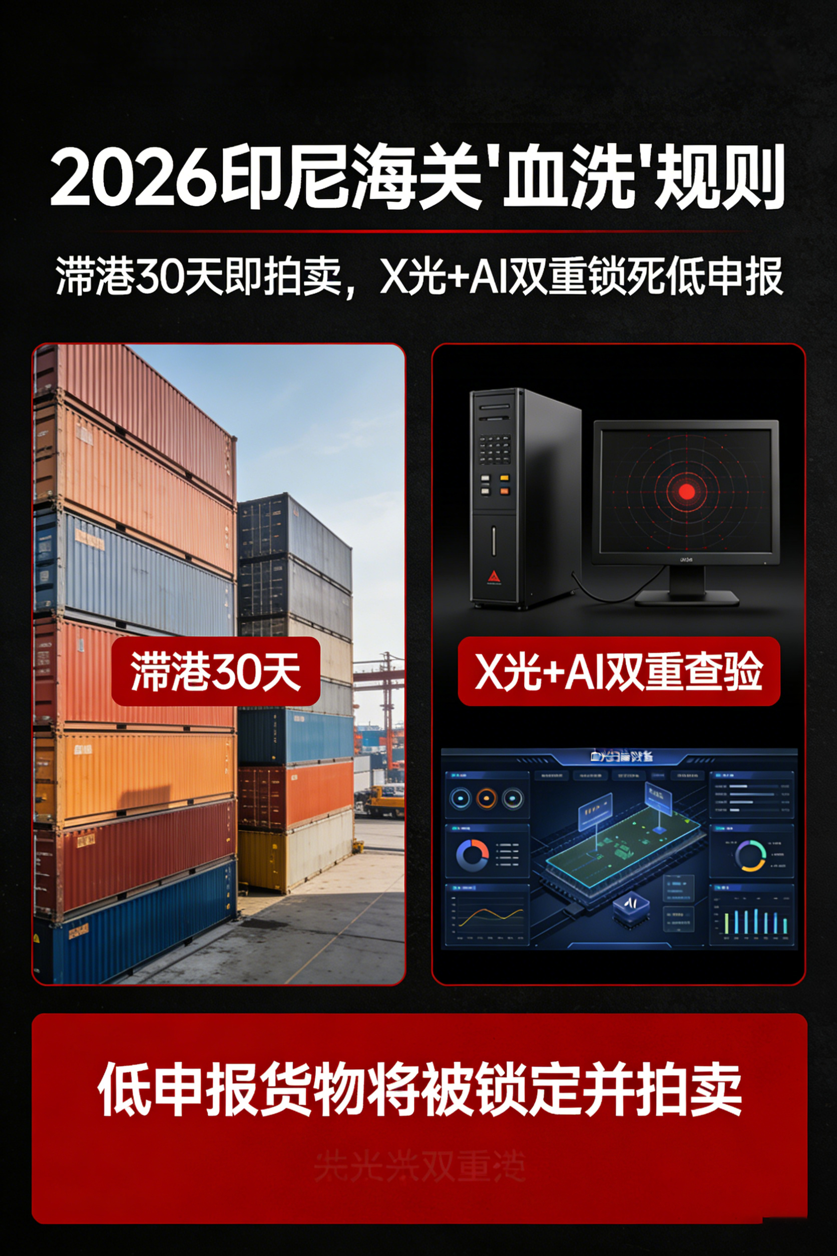 查验力度全面升级。 为配合新规执行,雅加达丹戎不碌港、泗水丹戎佩拉港等核心港口已对纺织品、电子产品、化妆品、陶瓷制品及儿童玩具等高风险品类实施近乎100%的开箱查验。同时,海关启用“X光扫描+AI研判”双重智能查验系统,集装箱扫描图像实时上传至中央数据中心分析,极大压缩人为操作空间。