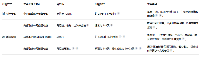 选择哪种菲律宾专线,主要取决于你的货物类型、时效要求和预算: