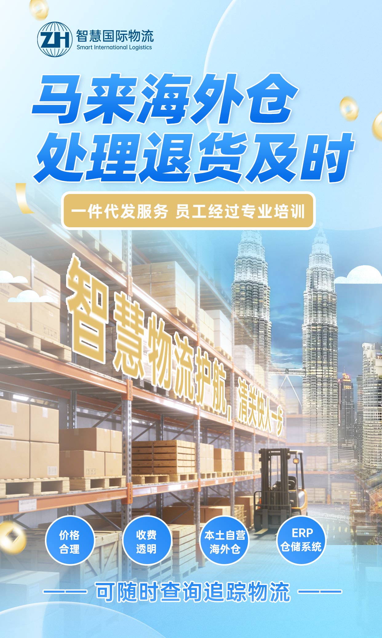 广东智慧国际物流,专注海外仓一件代发和电商一站式发货服务,目前在印尼、菲律宾、巴西、马来西亚等地设有海外仓,总面积超过1万平方米。其中,我们的马来西亚仓,就是为了帮您解决“中国到马来西亚”这条路上的各种难题——时效慢、售后难、仓储人工成本高,统统交给我们来处理。