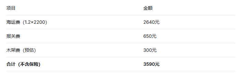 计费规则:最低消费0.3立方米;1立方米限重500公斤,超重按“重量kg÷500=计费立方”;一般贸易报关费650元/票,申报超6项加收80元/页。