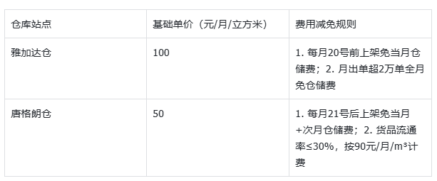 雅加达、唐格朗双仓差异化定价,附带仓储减免规则: